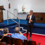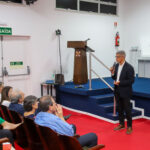 Dr. Augusto Tufi Hassan, presidente da SBM, ressaltou: “Reconhecemos a importância de ensinar o básico aos mastologistas para que possamos compreender e interpretar adequadamente essa disciplina hoje. Portanto, quero estender as boas-vindas a todos. Este é o lar da Medicina e sinto-me extremamente honrado por estar aqui. Lutei nacionalmente para garantir que a especialização em Mastologia fosse reconhecida e integrada a este ambiente, o mínimo que eu poderia fazer em reconhecimento pelo apoio recebido ao longo do tempo. Desejo a todos vocês apoio contínuo da Sociedade Brasileira de Mastologia, comprometida em proporcionar um ambiente educacional com professores de renome, como foi prometido. Sejam todos bem-vindos e aproveitem essa jornada com o respaldo da Sociedade e de toda a comunidade médica.”.