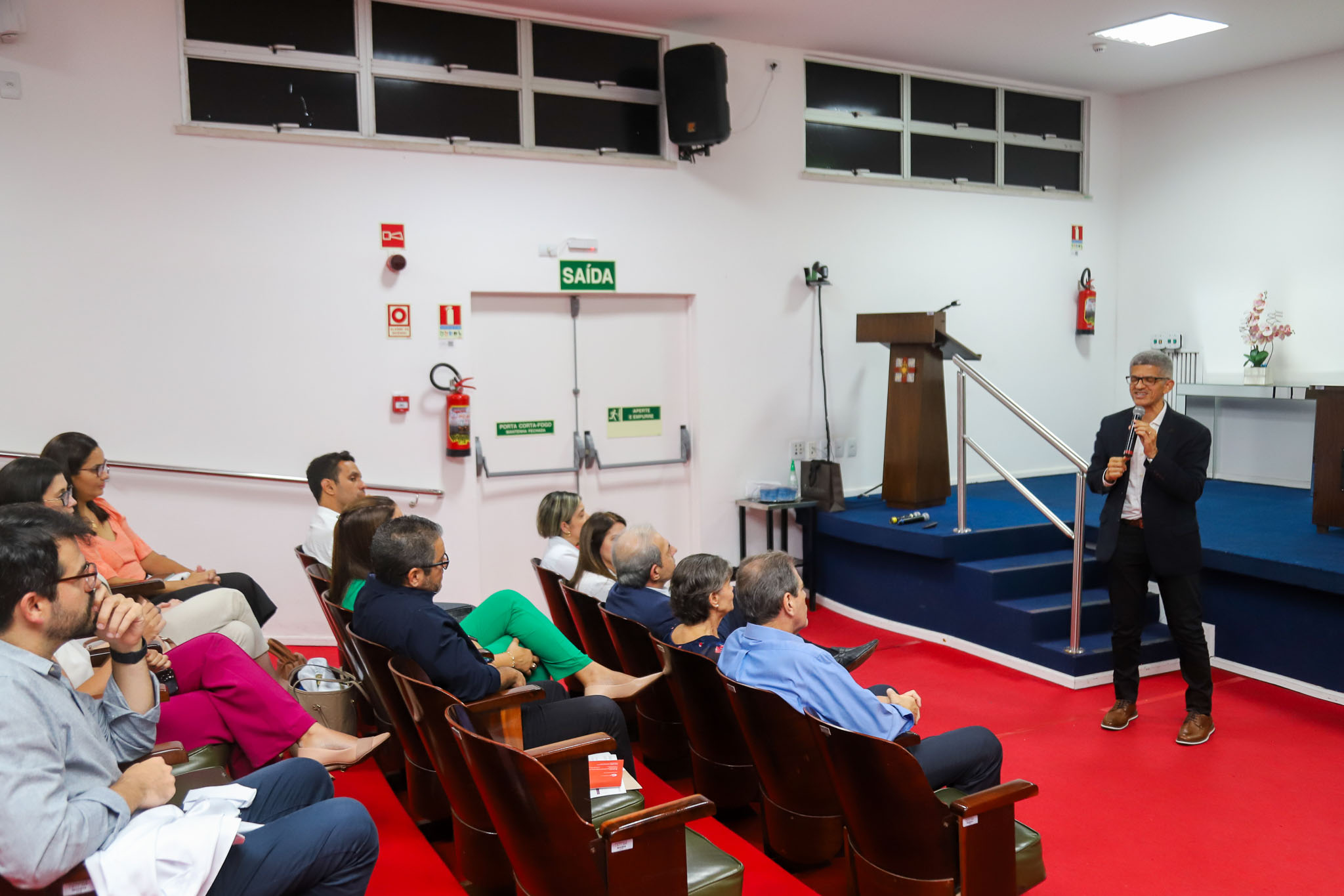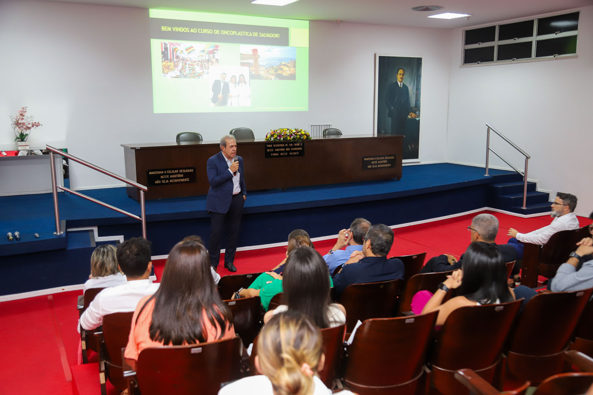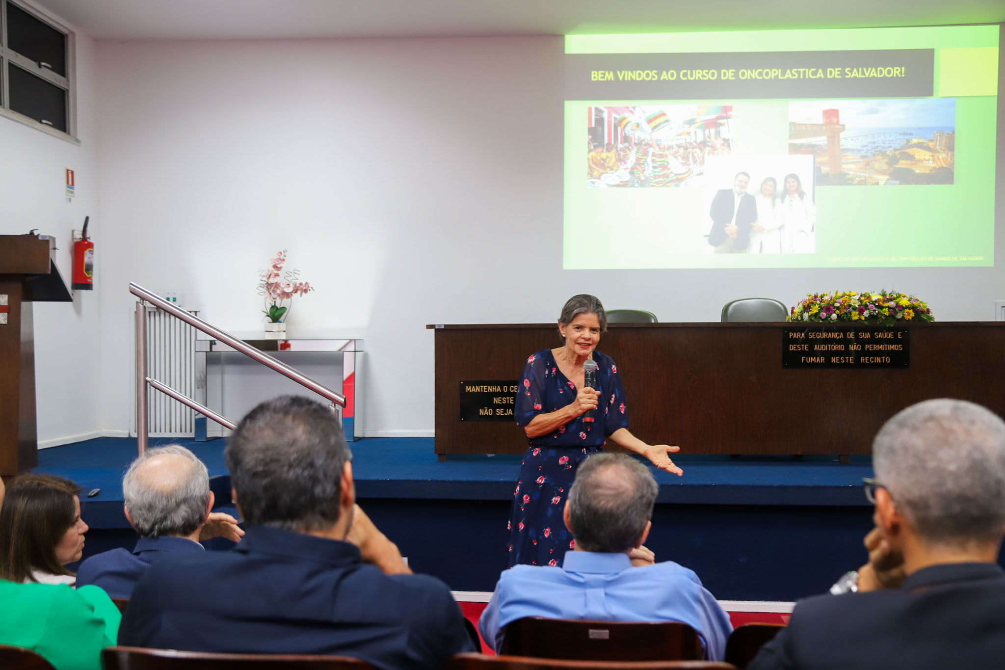 A Dra. Maria Romilda Maltez, 1ª vice-presidente da Liga Bahiana Contra o Câncer (LBCC), recepcionou a todos: “É maravilhoso tê-los aqui. Aqueles que passaram pelo HAM aprenderam e continuam com o coração neste lugar. Estou à disposição para qualquer necessidade que possam ter. A Liga Bahiana Contra o Câncer oferece apoio a todos e, embora não sejamos formalmente um hospital de ensino – e sim de assistência – atuamos como tal. Lidamos com dificuldades imensas e a nossa atuação é sempre um desafio. Por outro lado, somos entusiastas do Sistema Único de Saúde (SUS), que, como tudo na vida, requer cuidado e aprimoramento constante. Recebemos todos vocês com gratidão e alegria!”.