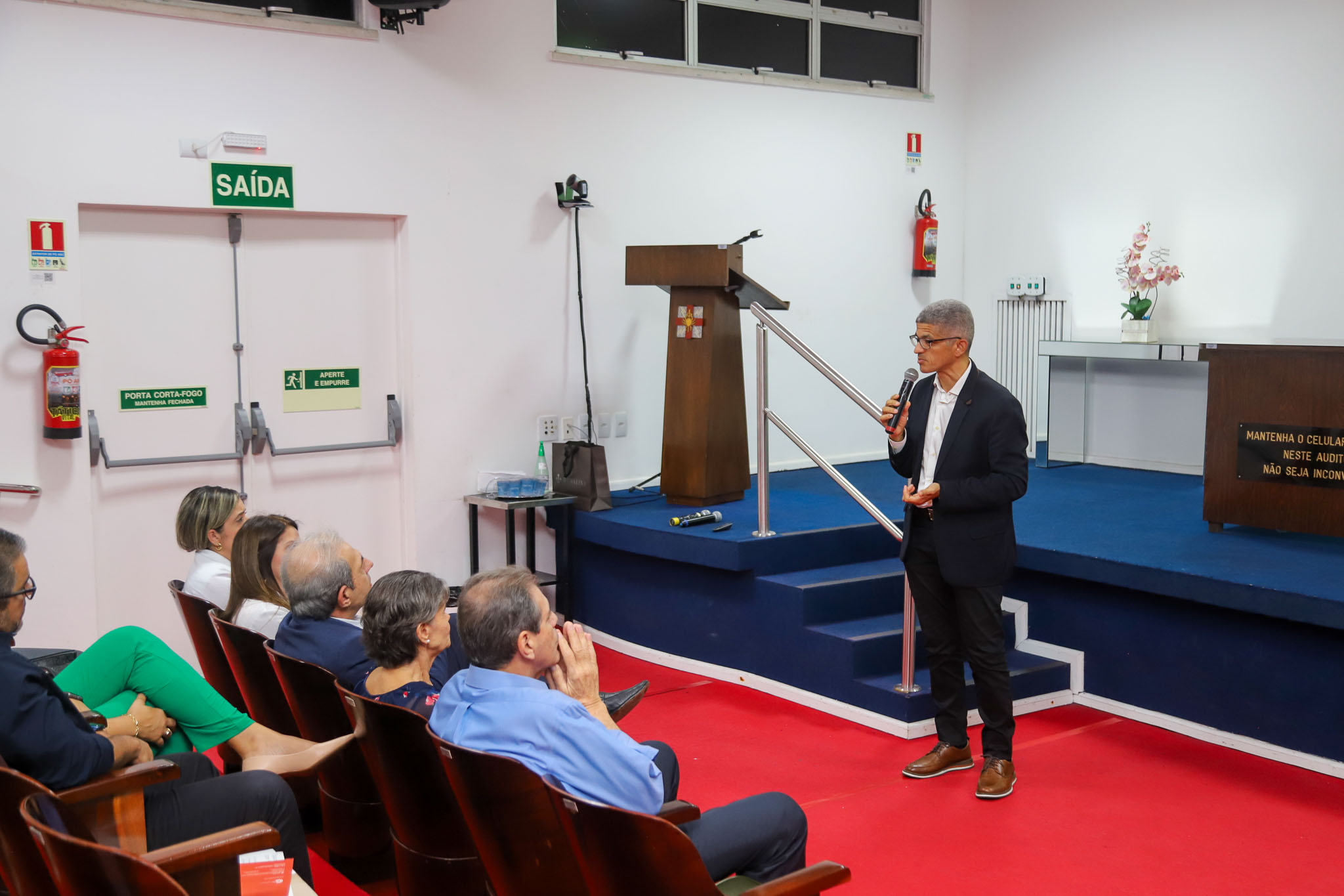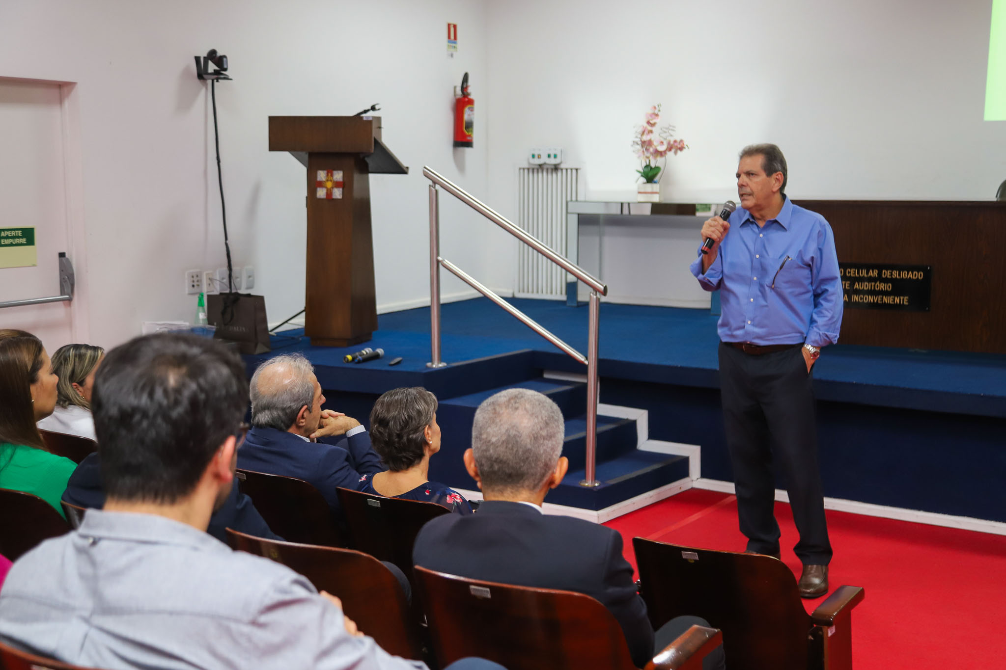 Dr. Augusto Tufi Hassan, presidente da SBM, ressaltou: “Reconhecemos a importância de ensinar o básico aos mastologistas para que possamos compreender e interpretar adequadamente essa disciplina hoje. Portanto, quero estender as boas-vindas a todos. Este é o lar da Medicina e sinto-me extremamente honrado por estar aqui. Lutei nacionalmente para garantir que a especialização em Mastologia fosse reconhecida e integrada a este ambiente, o mínimo que eu poderia fazer em reconhecimento pelo apoio recebido ao longo do tempo. Desejo a todos vocês apoio contínuo da Sociedade Brasileira de Mastologia, comprometida em proporcionar um ambiente educacional com professores de renome, como foi prometido. Sejam todos bem-vindos e aproveitem essa jornada com o respaldo da Sociedade e de toda a comunidade médica.”.