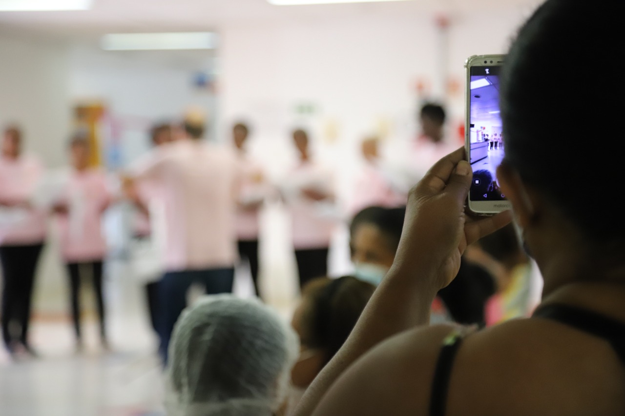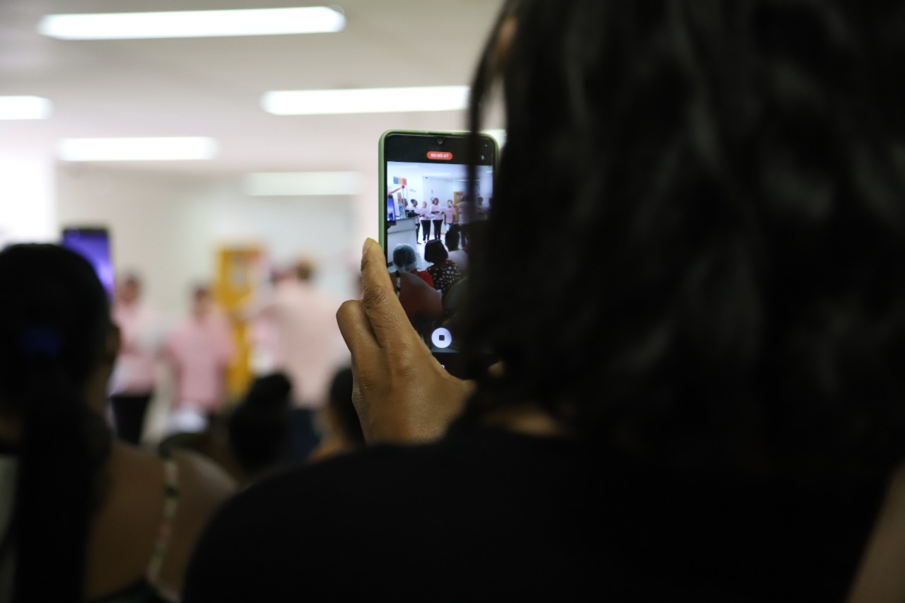 O mutirão contou também com o apoio do Núcleo Integrado de Mastologia e com a participação do coral do Grupo de Apoio à Mulher Mastectomizada (GAMMA) do HAM, que se apresentou nas recepções do ambulatório de Mastologia e da Mamografia.